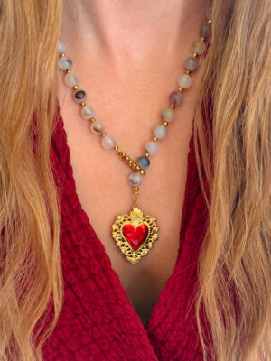 • Κολιέ με ημιπολύτιμες πέτρες και ατσάλινο στοιχείο