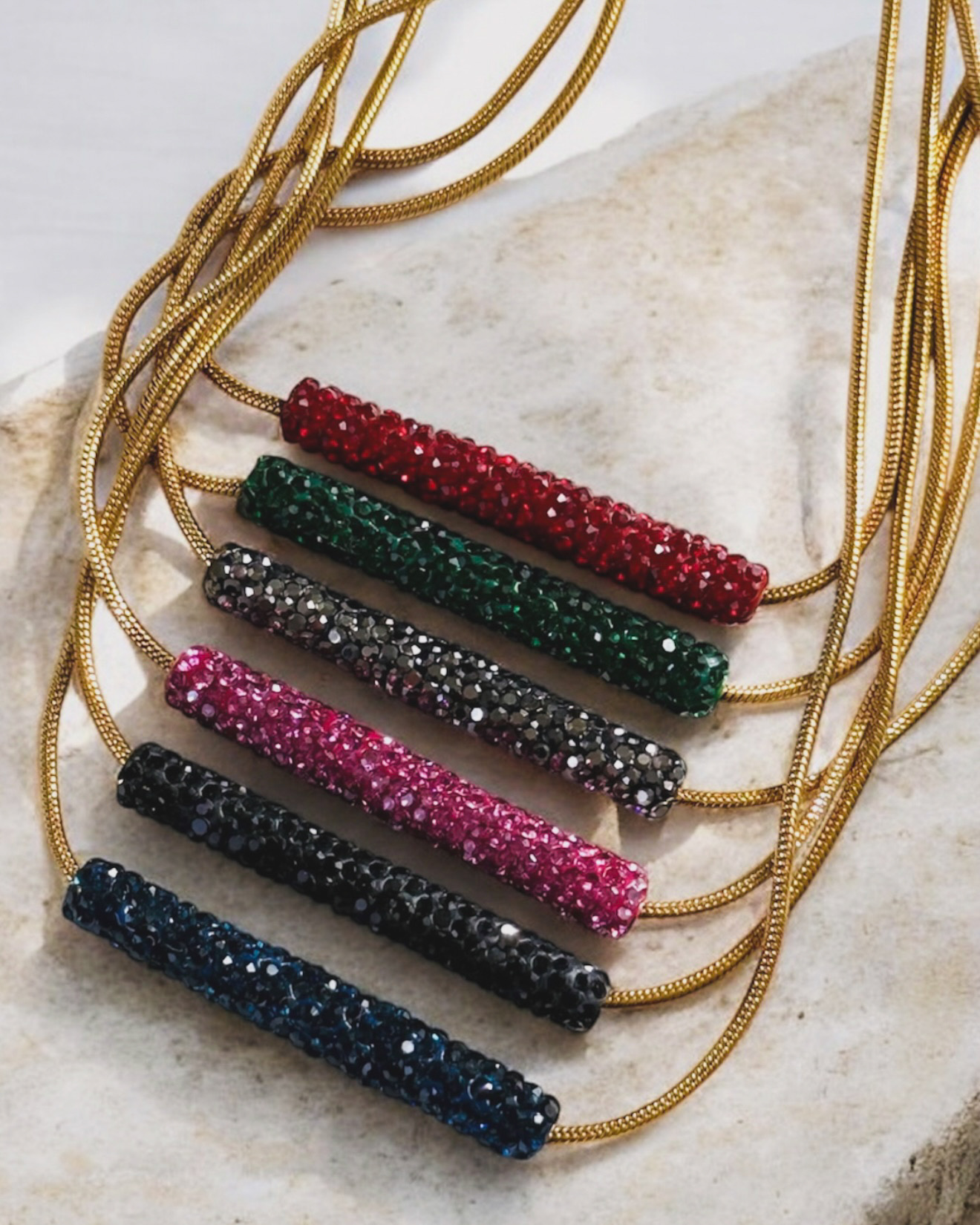 • Ατσάλινο κολιέ με χειροποίητο κρυστάλλινο σωλήνα