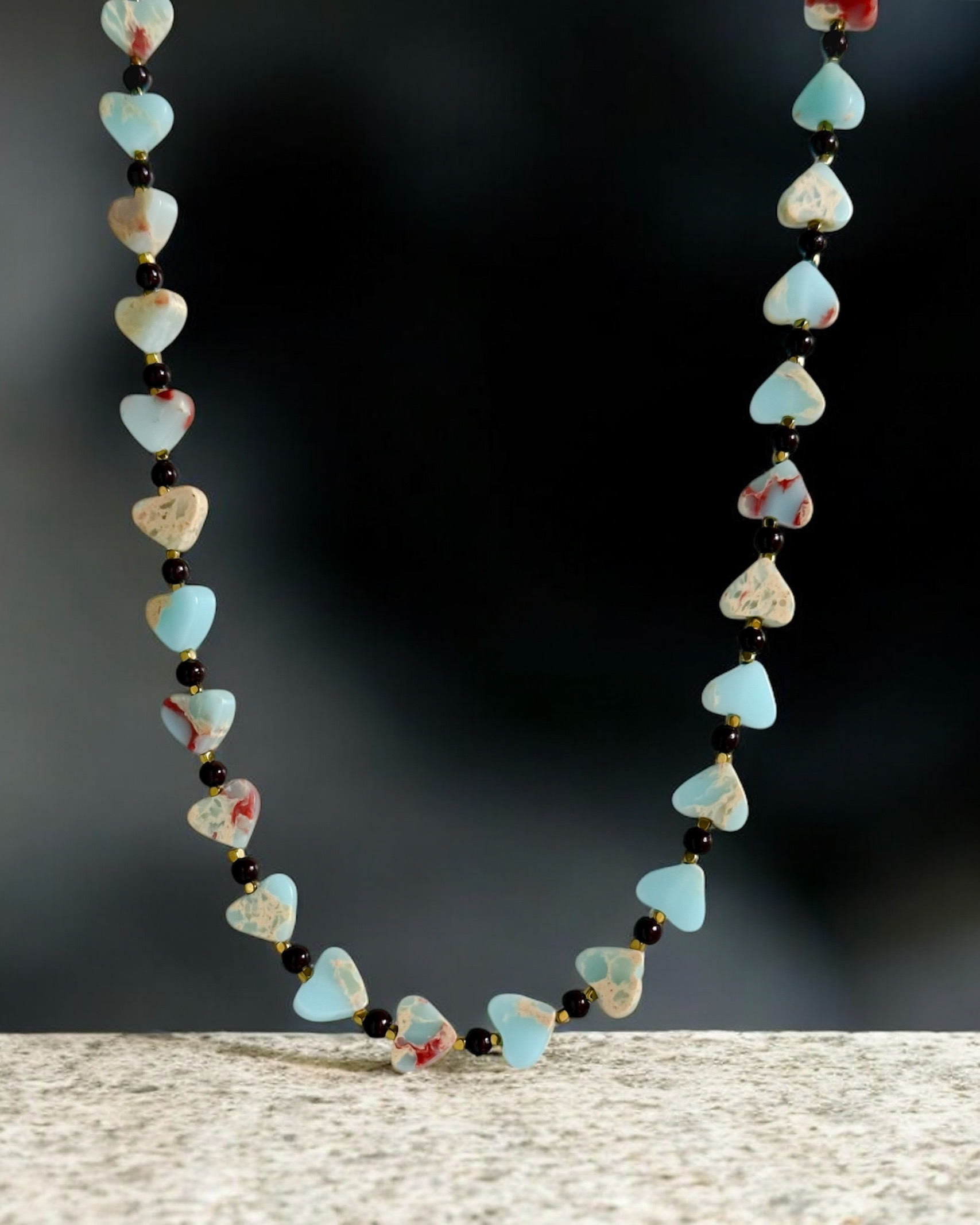♥︎ Κολιέ με ημιπολύτιμες πέτρες Αιματίτη & Αχάτη