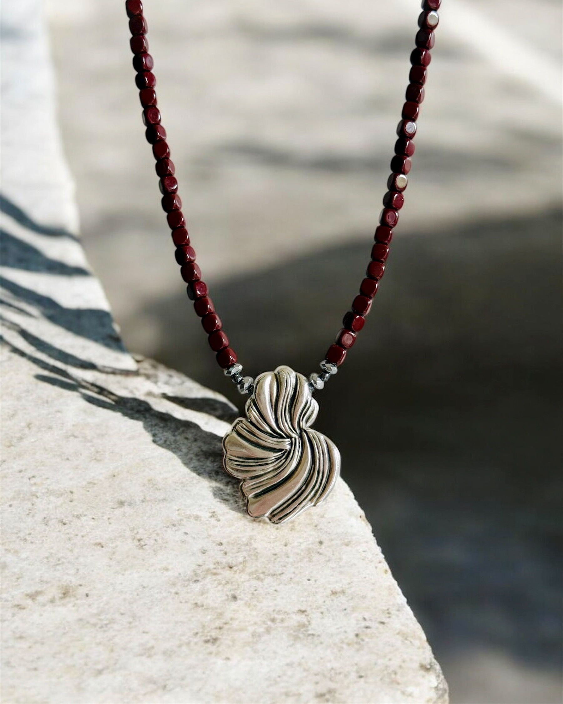 ♥︎ Κολιέ με ημιπολύτιμες πέτρες από Αιματίτη και Μεταλλικό Ζάμακ στοιχείο