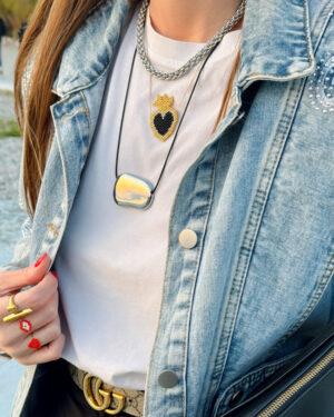 ♥︎ Ατσάλινο κολιέ με μαύρο κορδόνι & χρυσό ή ασημί ατσάλινο στοιχείο