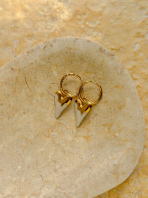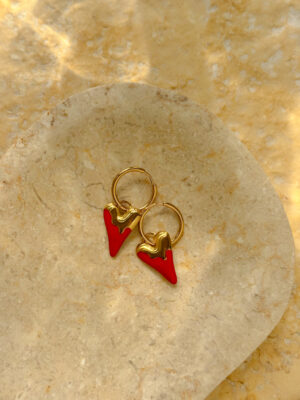 •Σκουλαρίκια ατσάλινα με επιχρυσωμένο κρίκο και καρδιές σε Κόκκινο ή Ιβουάρ Χρώμα