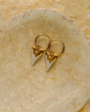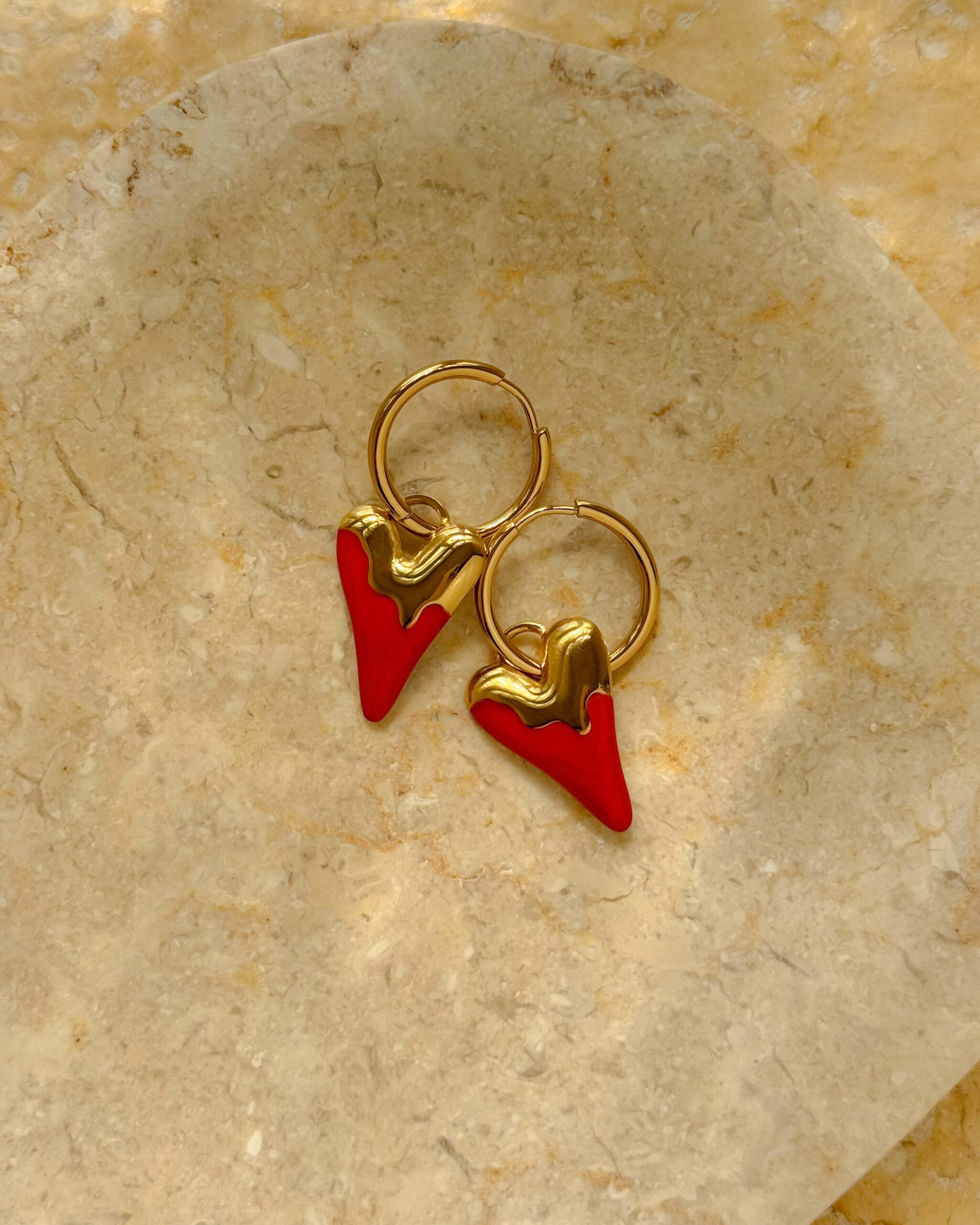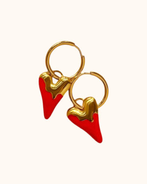 •Σκουλαρίκια ατσάλινα με επιχρυσωμένο κρίκο και καρδιές σε Κόκκινο ή Ιβουάρ Χρώμα