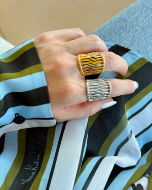 • ONE SIZE μέγεθος που αυξομειώνεται μερικώς ώστε να εφαρμόζει τέλεια σε περίμετρο δαχτύλου από 6cm έως 6,5cm