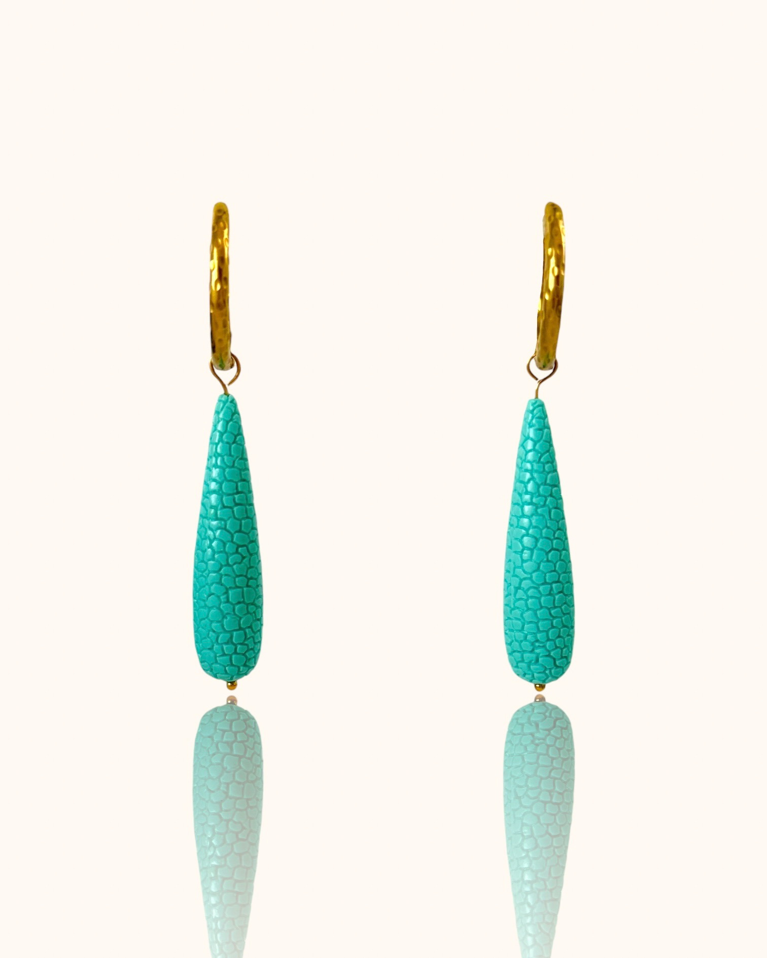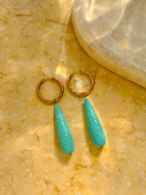 •Σκουλαρίκια ατσάλινα με επιχρυσωμένο κρίκο και τιρκουάζ σταγόνα