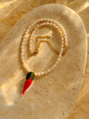 • Κολιέ με Μαργαριτάρια και κρεμαστή πιπεριά