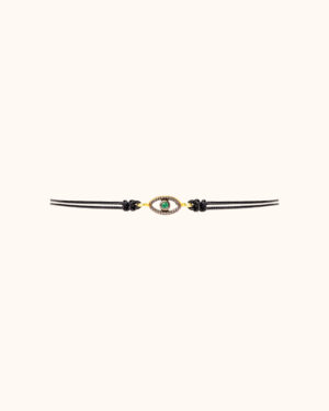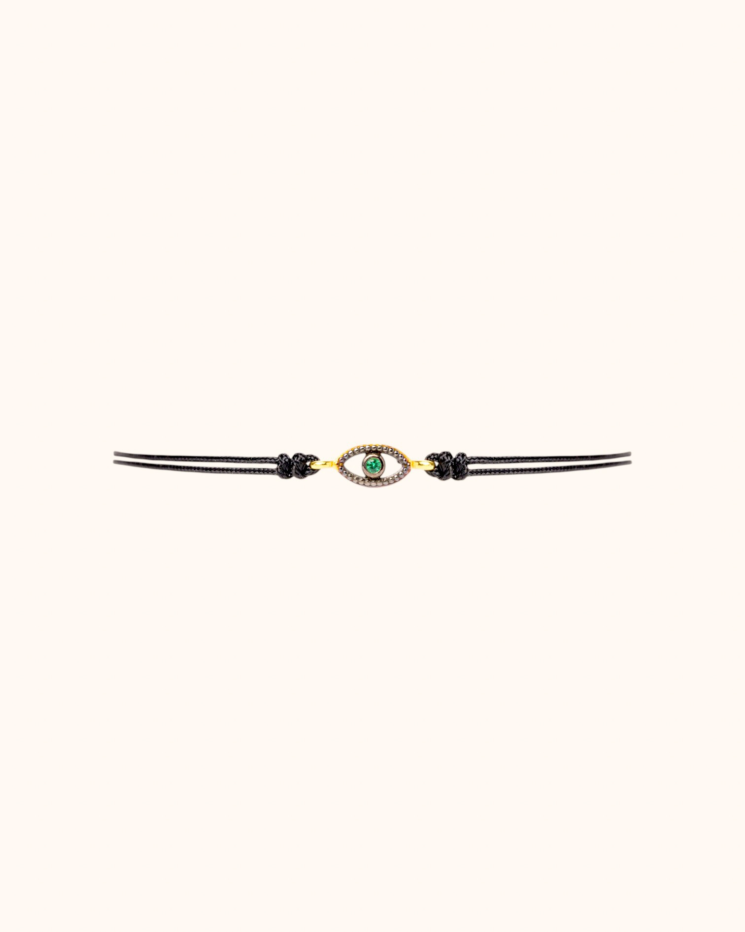 • Αποτελείται από μαύρο κορδόνι και στοιχείο μάτι (με ζιργκόν) από ασήμι 925 επιχρυσωμένο